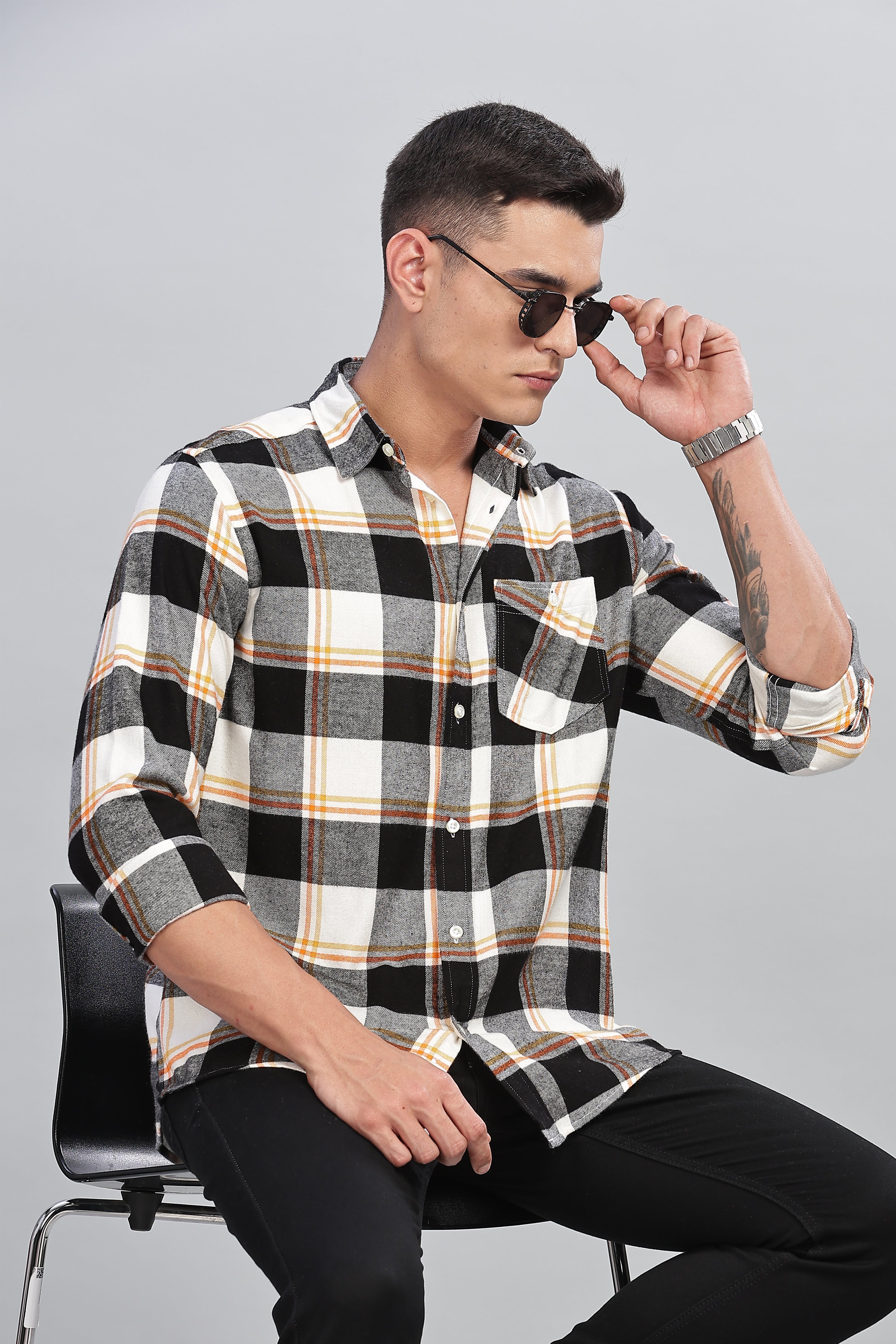 Crafted from 100% premium cotton, this full-sleeve shirt boasts a classic check print, injecting a timeless edge into your ensemble.Pair with tailored trousers for a refined yet relaxed look. Model wearing 6'/L.