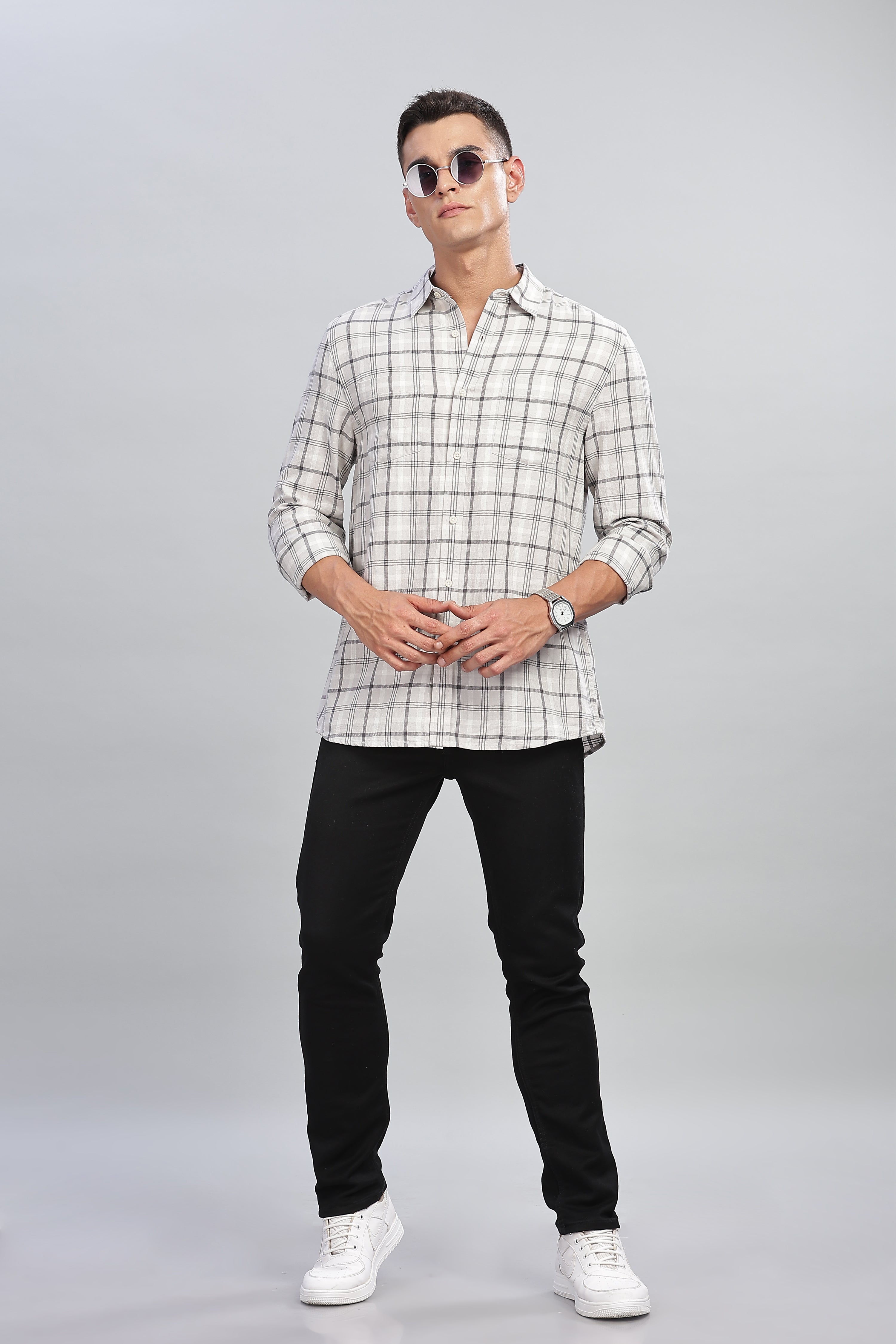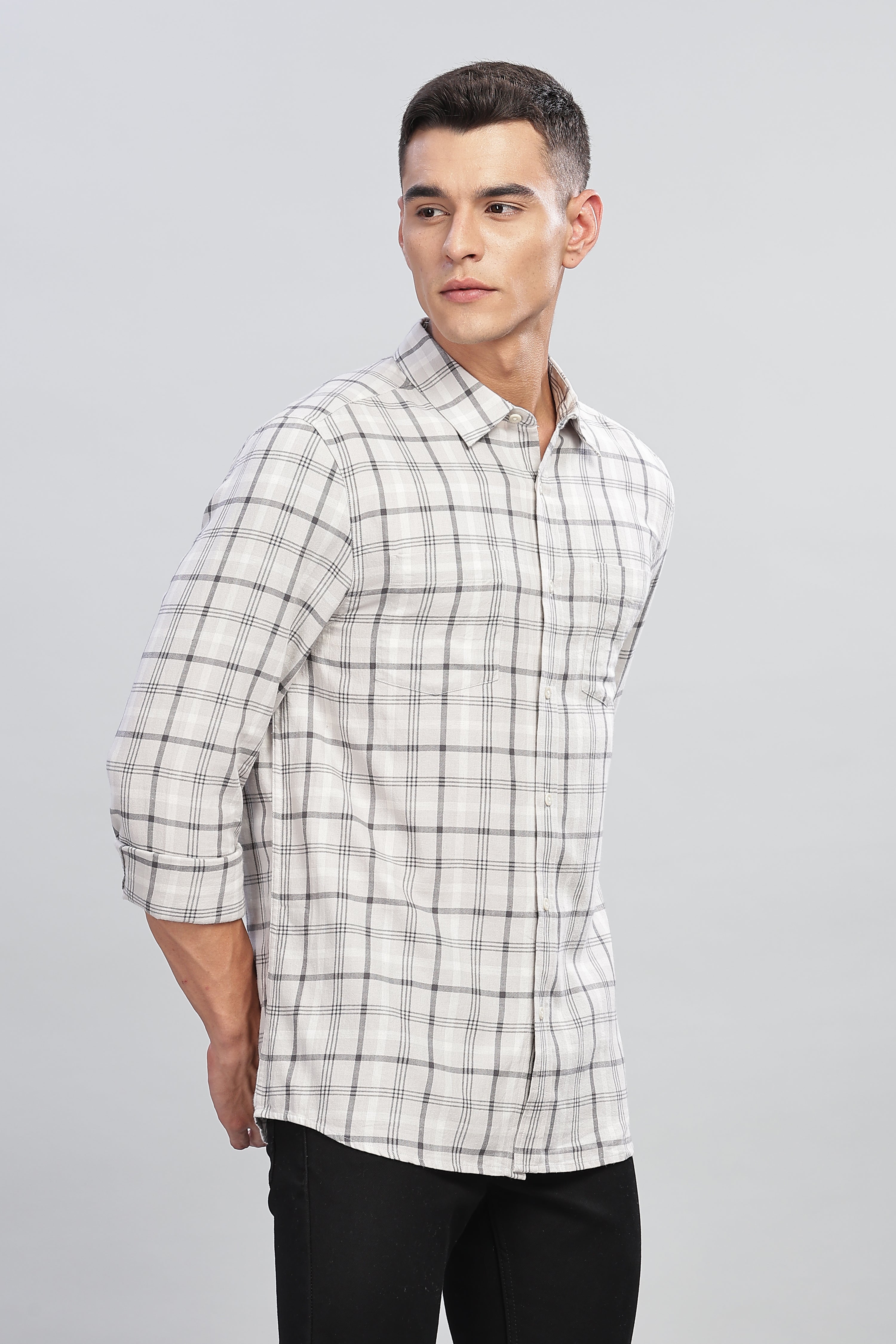 Crafted from 100% premium cotton, this full-sleeve shirt boasts a classic check print, injecting a timeless edge into your ensemble.Model wearing 6'/L.
